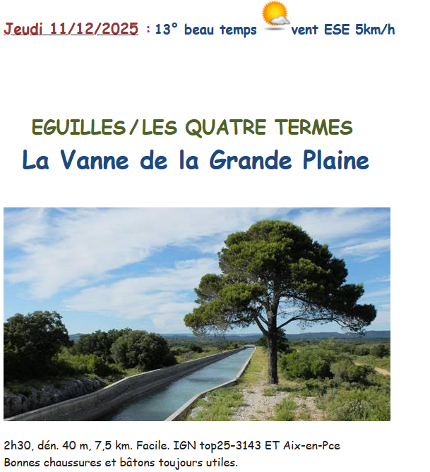 Jeudi, nous irons marcher entre Rognes et Saint-Cannat sur le plateau des Garrigues traversé par l’ancien canal du...